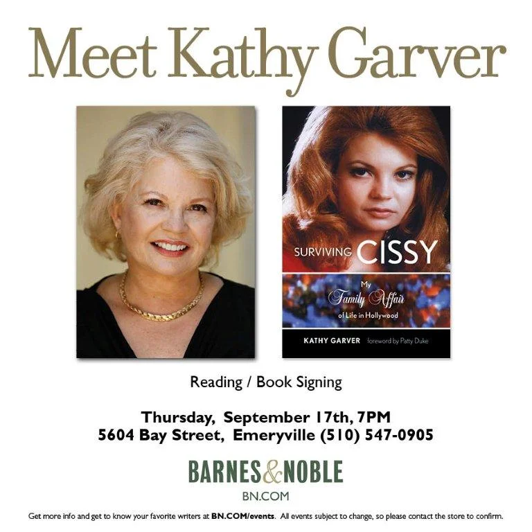 - Book Signing in my 'hood in San Mateo with meet and greet, excerpt readings, Q and A and of course, book signing of "Surviving Cissy: My Family Affair of Life in Hollywood". See you there!